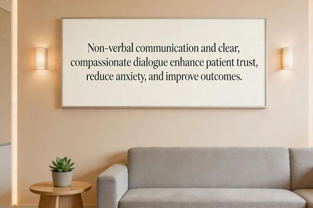 Non‑verbal communication (NVC) is a cornerstone of dental practice, conveying patients’ emotions, comfort level and trust often faster than words. A dentist’s facial expression, eye contact, tone of voice and relaxed posture can calm anxious patients, while crossed arms or hurried movements may raise tension. The clinic environment—cleanliness, lighting, and orderly layout—also sends silent messages about professionalism and safety. Clinicians who attentively read patients’ body language (e.g., clenched fists, shallow breathing) can detect hidden fear or pain and adjust their approach before procedures begin.