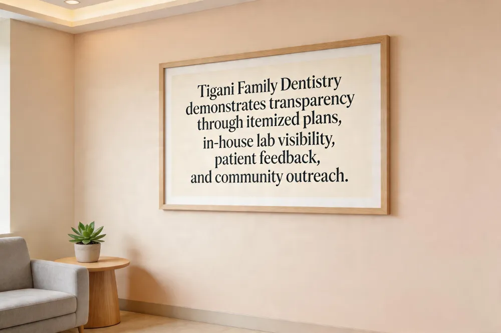 Transparent communication means using plain, jargon‑free language, visual aids, and clear, itemized treatment plans so patients fully understand diagnoses, options, risks, costs, and insurance coverage. This openness builds immediate trust, lowers anxiety, and encourages patients to follow recommendations, which in turn drives higher retention and referrals. Tigani Family Dentistry exemplifies this approach by offering detailed cost estimates, before‑and‑after visuals, and in‑house lab tours that demystify restoration processes. The practice welcomes questions, uses patient‑friendly language, and follows up via secure messaging, ensuring families feel heard and informed. By combining personalized education with a family‑focused, comfortable environment, Tigani creates a transparent, trustworthy experience that sustains long‑term patient loyalty.