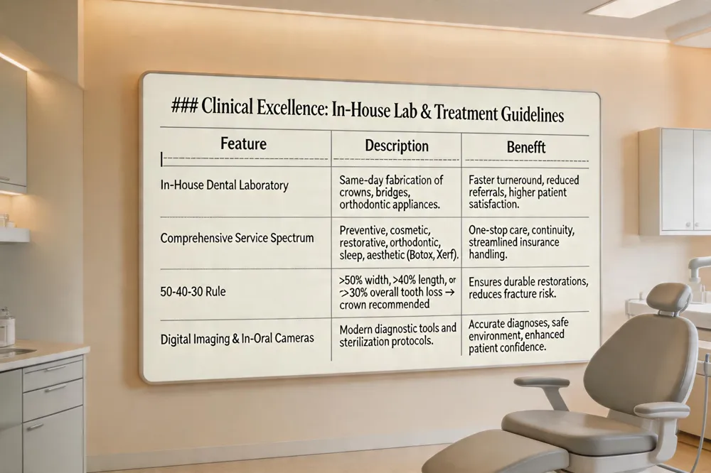 | In‑House Dental Laboratory | Same‑day fabrication of crowns, bridges, orthodontic appliances. | Faster turnaround, reduced referrals, higher patient satisfaction. |