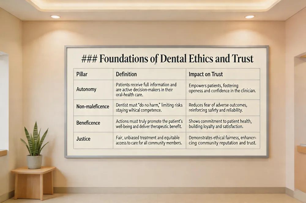 Four Pillars of Dental Ethics & Their Impact Together, the pillars guide everyday practice—respecting patient autonomy, avoiding harm, promoting benefit, and ensuring justice—while simultaneously building the trust essential for a thriving, community‑focused dental practice.