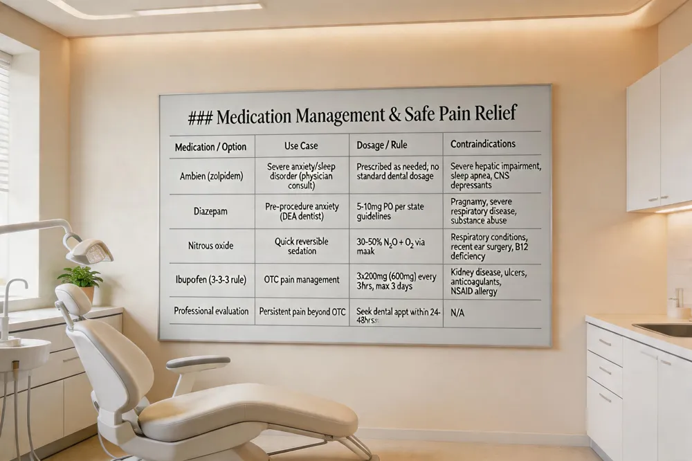 Tigani Family Dentistry prioritizes patient trust and comfort by offering evidence‑based sedation and pain‑management options. Yes, a dentist can prescribe Ambien (zolpidem) only in rare cases when severe anxiety or a sleep disorder directly interferes with dental treatment, and usually after consulting the patient’s primary‑care physician or a sleep specialist; most practices instead use nitrous oxide or oral benzodiazepines for quicker, safer sedation. Conversely, many states allow dentists with a DEA license to prescribe diazepam for short‑term anxiety relief before a procedure, following strict medical‑history review and state regulations. For over‑the‑counter pain, the 3‑3‑3 rule advises taking three 200 mg ibuprofen tablets (total 600 mg) every three hours, not exceeding three days, while avoiding use in patients with kidney disease, ulcers, or drug interactions. If pain persists beyond this period, a professional dental evaluation is essential. By communicating clear dosing instructions, coordinating with physicians, and emphasizing preventive education, Tigani Family Dentistry upholds patient trust and reinforces its reputation for family‑centered community experiences.
