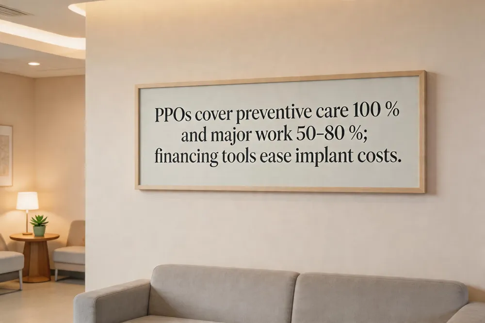 Financial outlook: A full‑scope plan typically costs $30–$50 per person per month via insurance or discount plans. Without coverage, a routine exam and cleaning runs $75–$200, fillings $50–$250, crowns $800–$2,000, and implants $2,500–$3,000. PPO plans cover 100 % of preventive services and 50‑80 % of basic and major work, keeping out‑of‑pocket expenses low. For a family of four, budgeting $1,200–$2,500 annually usually covers routine and occasional restorative needs.