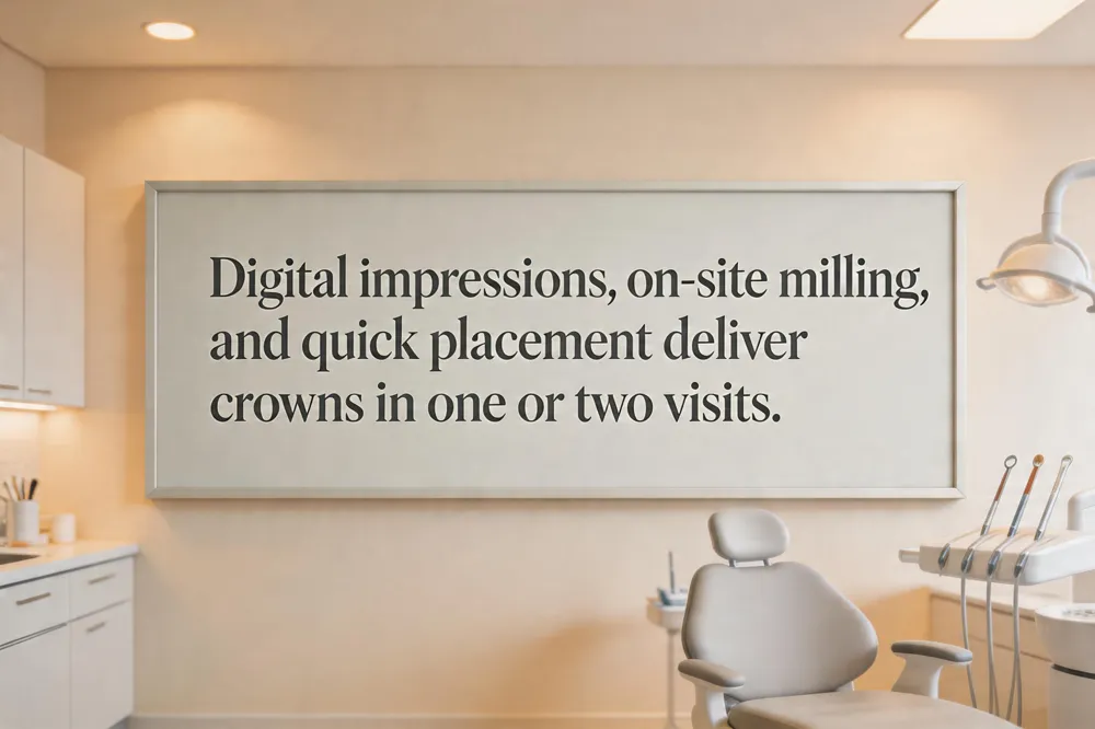 At Tigani Family Dentistry the crown journey begins with an anesthetic to numb the tooth. The dentist removes decay or old filling, reshapes the tooth, and captures a digital impression. Because the practice has an on‑site lab, the impression goes directly to technicians who mill a porcelain, zirconia, or metal‑ceramic crown, allowing quick fabrication. If a permanent crown cannot be placed immediately, an acrylic crown protects the tooth while final piece is finished. During the second visit the crown is removed, the permanent crown is checked for fit, bite, and shade, then bonded with dental cement. The procedure usually requires one or two appointments and yields a restoration that can last 15‑20 years with care.