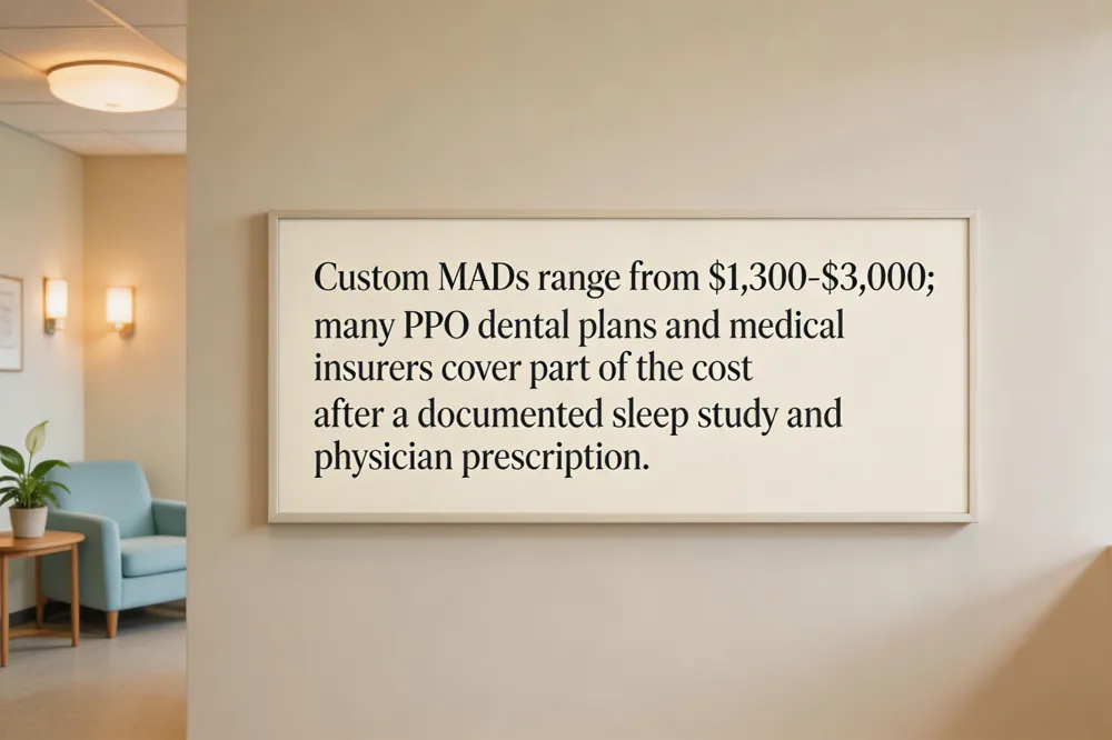 Dental device for sleep apnea cost – The price includes a personalized mandibular advancement device (MAD) that safely repositions the lower jaw, reducing airway obstruction and snoring.