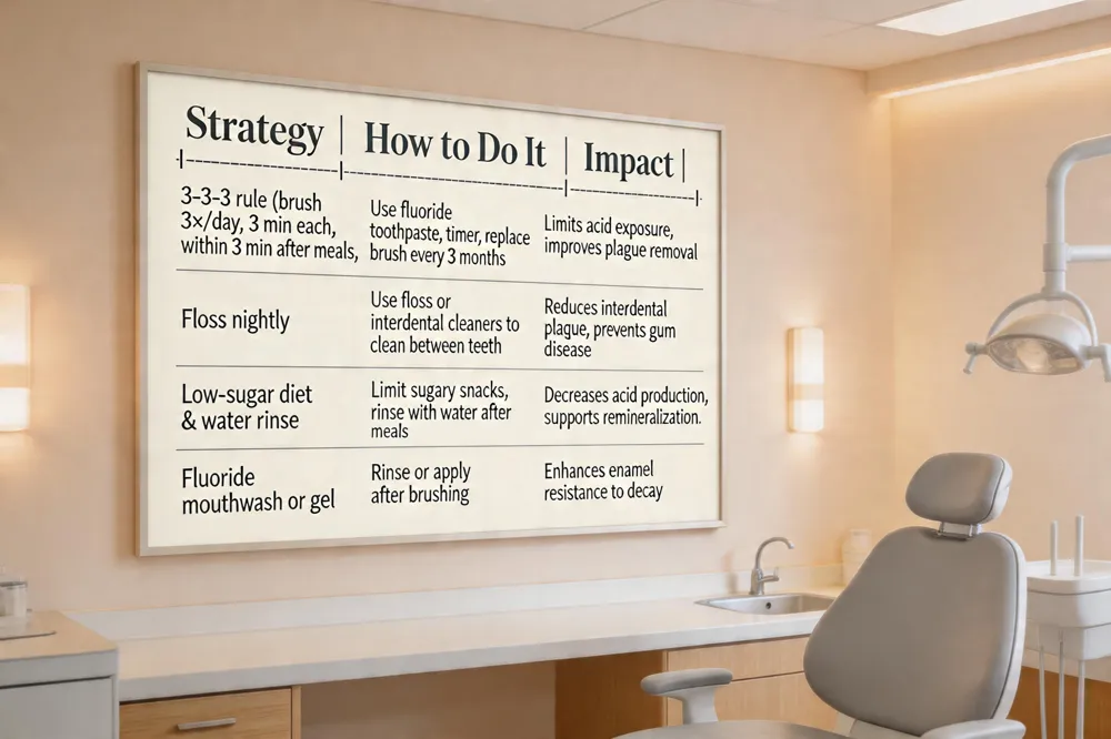 Prevent cavities from getting worse – Maintain diligent oral‑hygiene, use fluoride rinses or prescription gels, and consider sealants on molars. Chew xylitol‑sweetened gum after eating to neutralize acids and promote saliva flow. Schedule semi‑annual check‑ups for early detection.