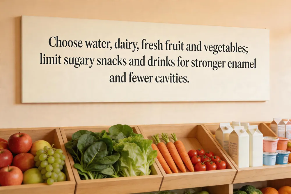 Sugar‑limiting strategies – Offer fresh fruit, cheese, nuts, or plain yogurt instead of candy, soda, or sticky snacks. Keep sugary drinks to a minimum and serve them only at meals, not as constant sips, to reduce the time acid‑producing bacteria contact teeth. Hydration with fluoridated water – Encourage children to drink fluoridated tap water throughout the day; it rinses away food particles, supplies systemic fluoride, and helps remineralize enamel. A water‑first approach also cuts down on sugary beverage consumption. Mouthguards and sports safety – For any child participating in contact sports, fit a custom‑made mouthguard from a dentist. Properly fitted guards protect teeth and soft tissues from high‑impact injuries and are far more effective than over‑the‑counter options.