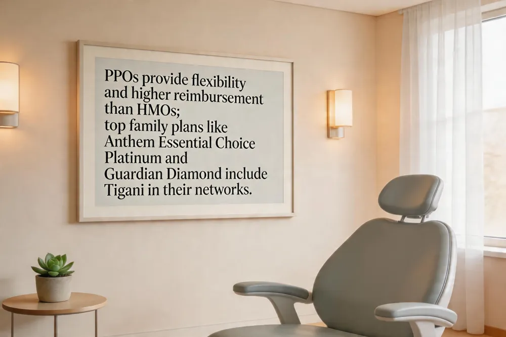 Choosing an In‑Network Dentist at Tigani Family Dentistry Selecting Tigani Family Dentistry, an in‑network PPO provider, reduces out‑of‑pocket costs and streamlines claims. The practice accepts most PPO insurances, offers preventive, cosmetic, restorative, orthodontic, sleep‑medicine, and aesthetic services, and features an in‑house lab that speeds restorations and can keep patients within their annual maximums. Staff verify coverage, submit electronic claims, and provide pretreatment cost estimates for transparent, family‑focused care.